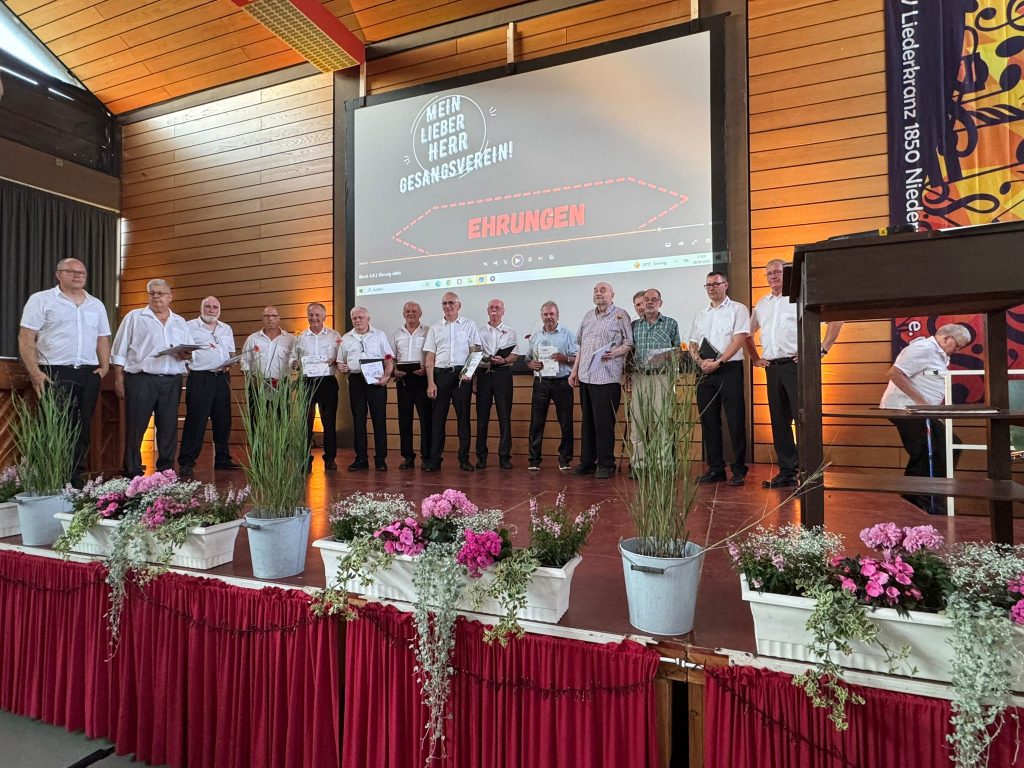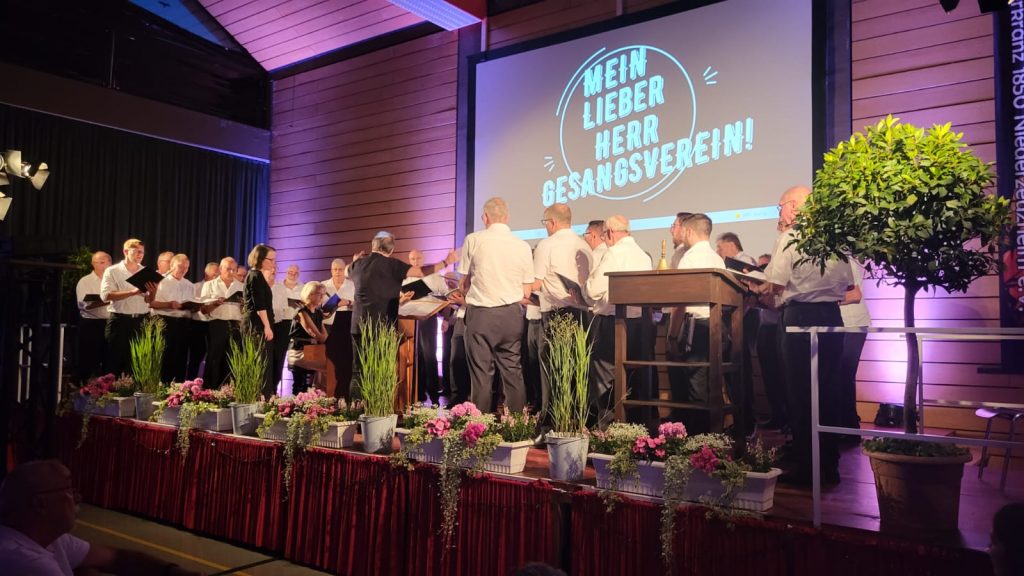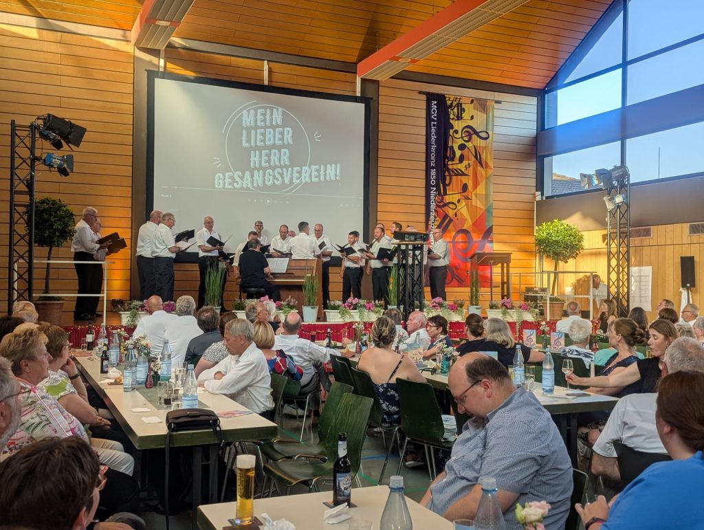 Ein besonderer Dank gilt dem MGV Niederzeuzheim, stellvertretend seinem ersten Vorsitzenden Matthias Fritz, der mit großem Einsatz und Unterstützung von Vereinsmitgliedern das Jubiläum über Monate akribisch vorbereitet hatte. Bereits am Vorabend begeisterte ein Festkommers, moderiert im Duo von Chorleiter Jürgen Faßbender und dem in der Region bekannten und in Niederzeuzheim aufgewachsenen ehemaligen Priester Sascha Jung, beide überaus eloquent, humorvoll und mit der Gabe ausgestattet, die Zuhörer zu fesseln. Mit Witz, Charme, Sketchen und einer durch Jürgen Faßbender sensibel gewählten Chorliteratur führten sie die Besucher auf eine Zeitreise von 1850 bis in die Gegenwart – ein unvergesslicher Abend.