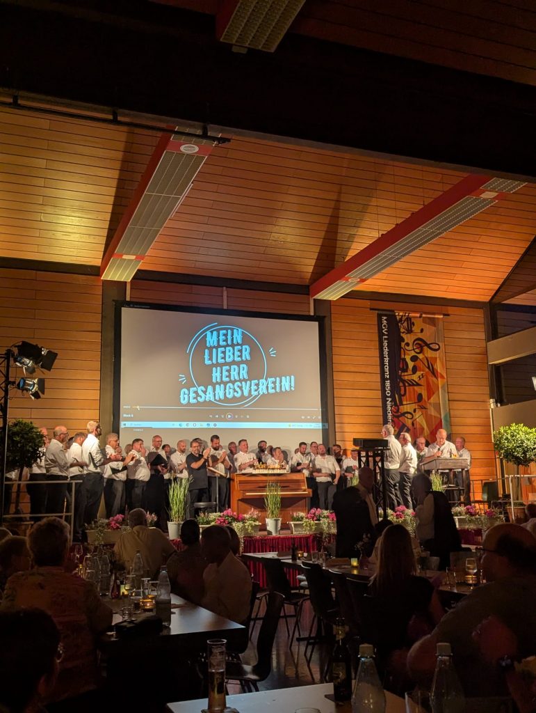 Der Abend war denkwürdig, er machte deutlich, was der Einsatz von Ehrenamt vermag, wie wichtig das Ehrenamt für unsere Gesellschaft ist, welchen Wert Chöre für unsere Gesellschaft haben, dass das Thema politische Neutralität wieder brandaktuell ist und dass Chöre auch heute, genau wie 1850, Menschen einen neutralen Raum bieten können. Der Abend zeigte überdeutlich mittels einer Bilderwand, was Chöre neben musikalischer Bildung und Erlebnissen zu bieten haben: Gemeinschaft, Emotionen, Heimat, die interessantesten Reisen, Völkerverständigung, eine gemeinsame Geschichte und Lebenserinnerungen aller Choraktiven, die bis zum Lebensende verbinden.