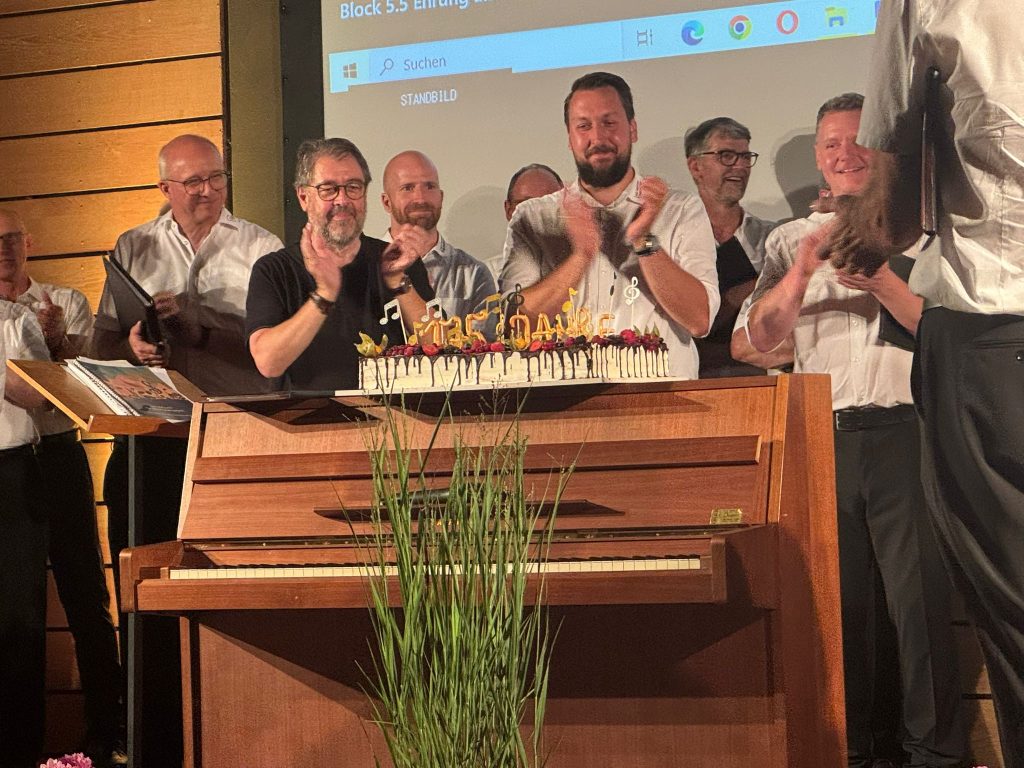 Als Überraschung gab’s für den Verein einen großen vorbestellten Jubiläumskuchen. Selbstverständlich wurde auch draußen noch weitergesungen, denn das sind mit die schönsten Momente eines solchen Abends, Momente, die verbinden und jeden zufrieden und glücklich nach Hause verabschieden.